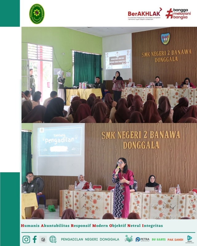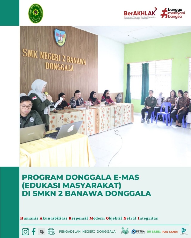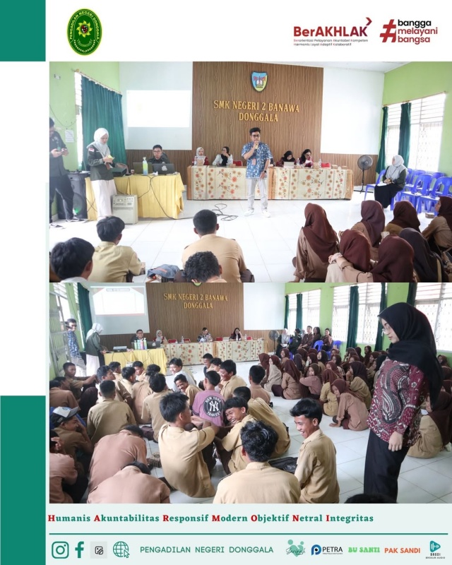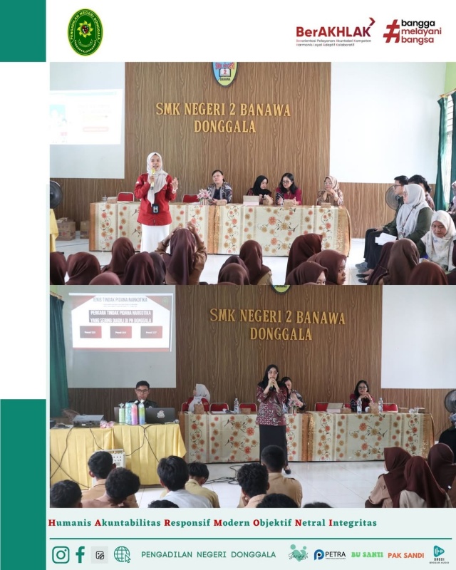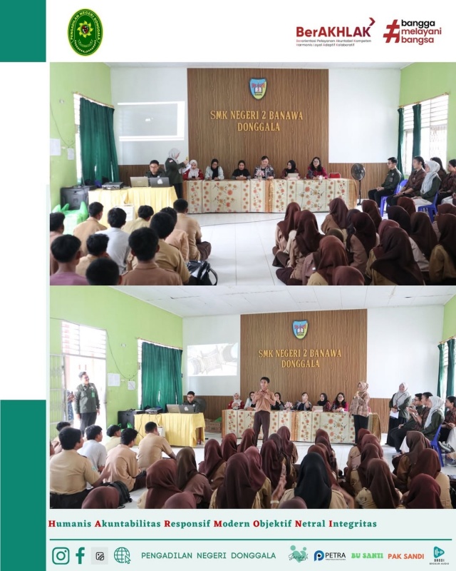Pelaksanaan program Donggala E-Mas (Edukasi Masyarakat) oleh Pengadilan Negeri Donggala yang Bekerja Sama dengan Badan Narkotika Nasional Donggala dan Dinas Pendidikan dan Kebudayaan Kabupaten Donggala di SMK Negeri 2 Banawa hari Jumat 7 November 2025.