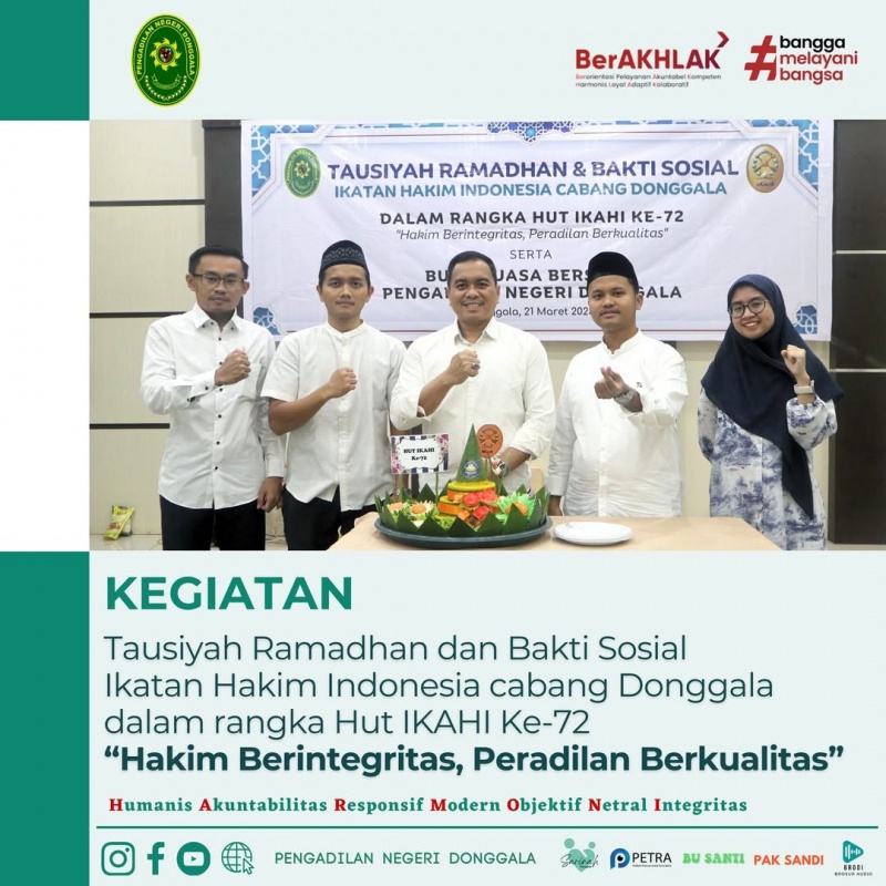 Tausiyah Ramadhan dan Bakti Sosial Ikatan Hakim Indonesia Cabang Donggala Dalam Rangka HUT IKAHI ke-72 "Hakim Berintegritas, Peradilan Berkualitas"