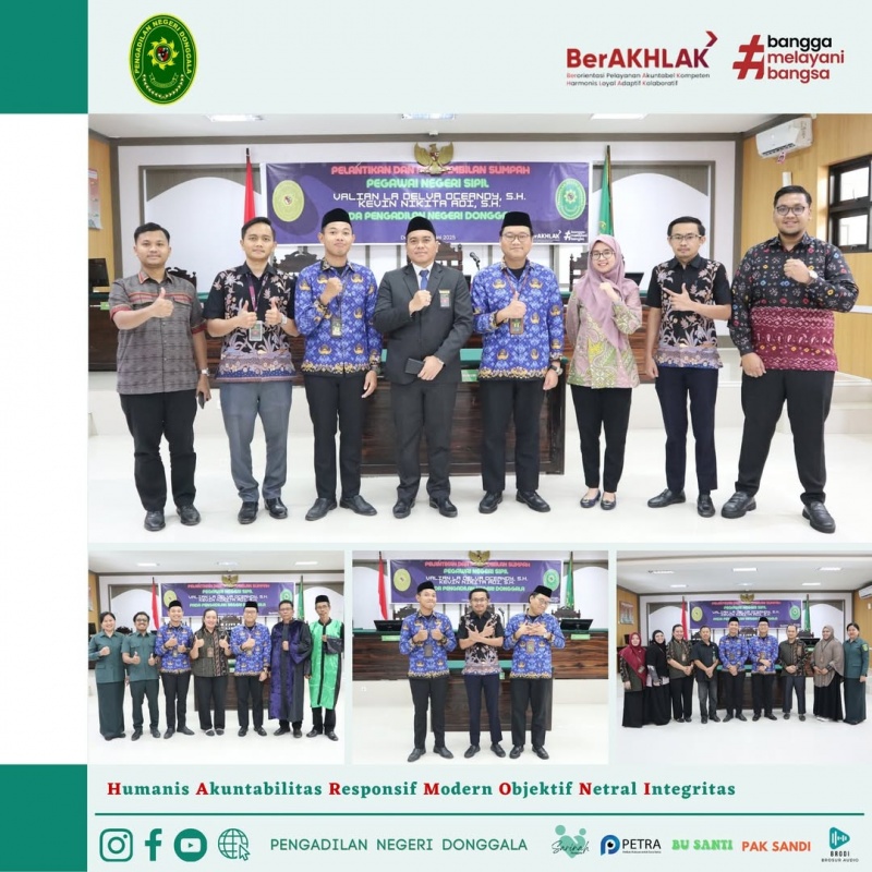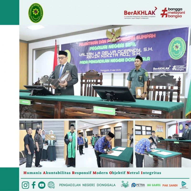 Pelantikan dan Pengambilan Sumpah Pegawai Negeri Sipil Bapak Valian La Delva Oceandy, S.H. dan Bapak Kevin Nikita Adi, S.H. pada Pengadilan Negeri Donggala