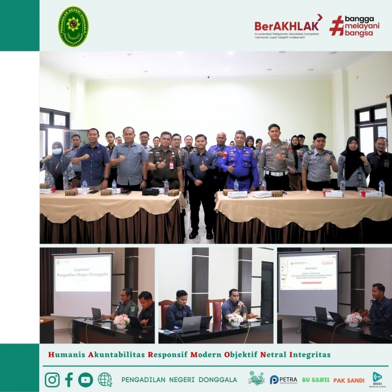 Sosialisasi Aplikasi E-Berpadu, Restitusi, Restorative Justice, dan Standar Layanan pada Pengadilan Negeri Donggala pada tanggal 27 Mei 2025.