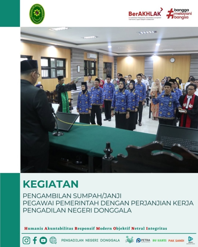 Donggala - Senin, 1 September 2025, telah dilaksanakan Pengambilan Sumpah/Janji Pegawai Pemerintah dengan Perjanjian Kerja (PPPK) pada Pengadilan Negeri Donggala, atas nama: