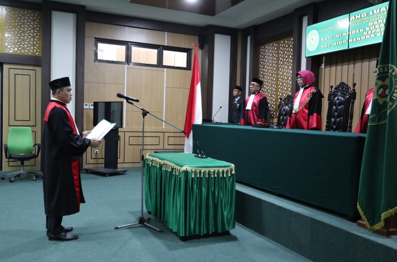 DONGGALA – Ketua Pengadilan Tinggi Sulawesi Tengah, YM. Dr. Hj. Nirwana, S.H., M.Hum. secara resmi mengambil janji YM. Niko Hendra Saragih, S.H., M.H. sebagai Ketua Pengadilan Negeri Donggala. Usai pengambilan janji, dilanjutkan dengan serah terima tugas, wewenang dan tanggungjawab jabatan dari Ketua Pengadilan Negeri Donggala lama yaitu YM. Ni Kadek Susantiani, S.H., M.H. kepada Ketua Pengadilan Negeri Donggala baru yaitu YM. Niko Hendra Saragih, S.H., M.H. di hadapan Ketua Pengadilan Tinggi Sulawesi Tengah, Jum’at (29/12).